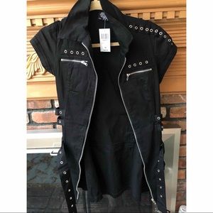 Sexy, incredible quality black dress with back corset, grommets, and metal loops. Never worn, new with tags.