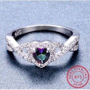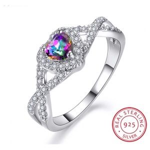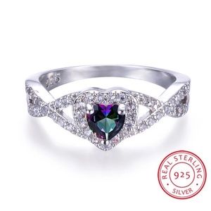 925 Sterling Silver Mystic Fire Topaz Rings For Women Rainbow Heart Zircon Birthstone Ring Wedding Bands Jewelry Gift. Box12/3/9D