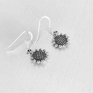 Sterling Silver Dangling Sunflower Earrings, Silver Earrings, Flower Earrings, 925 Stamped