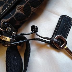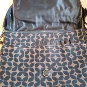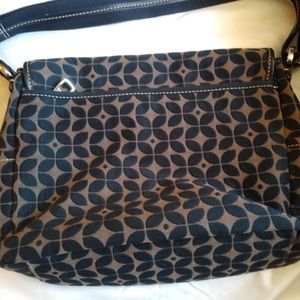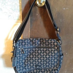 Fossil book bag/ large crossbody, brown with black exterior, black interior lining, exterior has 2 zipper pockets & 1 side slot pocket on each side, interior has 2 compartments, 1 zipper pocket, 2 credit card slots, 3 pencil/pen holders & 2 slot pockets & a magnetic snap on the flap. It is in excellent condition, like new, I paid $160 & used it twice, it measures 11" height x 15" length, has plenty of space