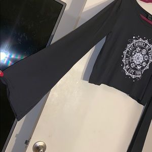 long bell sleeved crop top. boho style. worn one time I personally didn’t like the sleeves but if you don’t mind the bell style then this is for you! light weight and soft