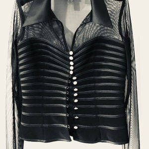 Sexy and elegant sheer Mesh and fabric paneled top with decorative button closure. Hardly worn. Perfect condition.