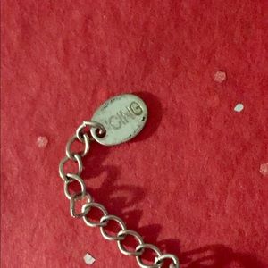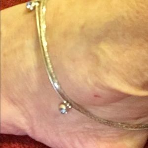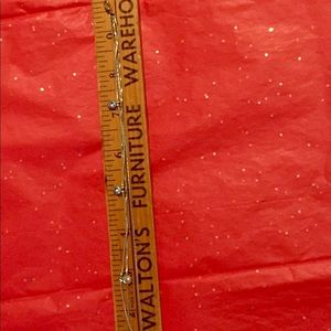 A very pretty 3-strand, silvertone ankle bracelet with light blue rhinestone dangles. It is adjustable from 9 inches to 10 inches . It is marked “Icing” . The lobster claw clasp works perfectly. Very good, used condition.: FINAL PRICE!