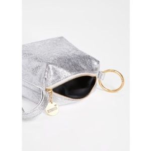 Studio 33 wristlet small purse NWT silver metallic with brass ring and brand tag