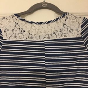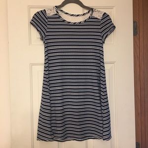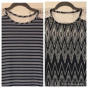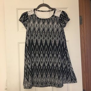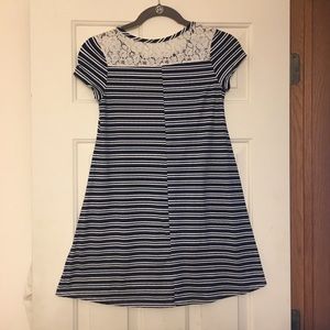 Lot of 2 - btween girls dress size 12, lace detail navy stripes and black zigzag. Good used condition. Soft fabric.