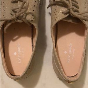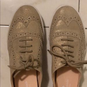 Brand new, never been worn. Extremely polished look - light gold capped shoelaces, neutral champagne suede makes it go with everything, with a subtle sparkle glitter for that extra special touch! Perfect for spring! Cushioned for comfort.