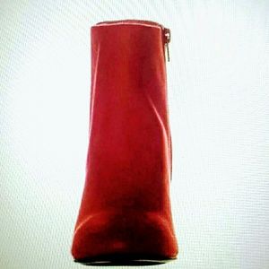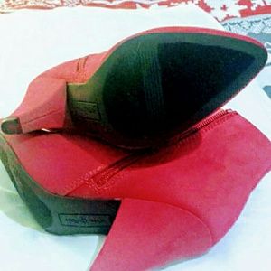 Calzada pointed toe ankle heel height 3.5 heel type cuban. Closure type ..zip. suede type look. Pretty cherry red color.