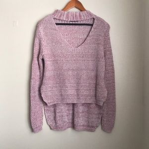 Boohoo Lena Choker V- Neck Pink Marled Sweater