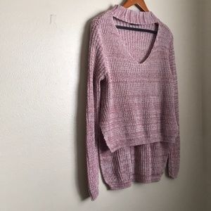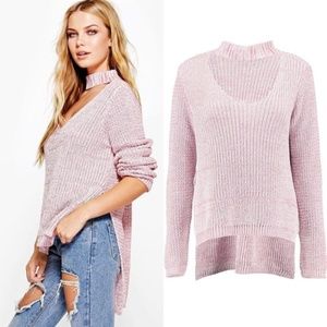 Boohoo Pink Marled Choker Neck Hi Low Sweater