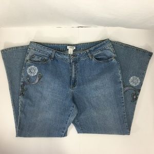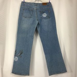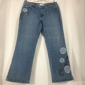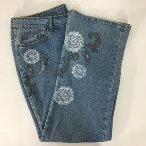 Beautiful High Rise Coldwater Creek Jeans with Floral Embroidery and Screen Printing.