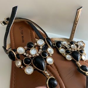 Beautiful black jewel sandals in great used condition. No missing stones! Please see photos for details