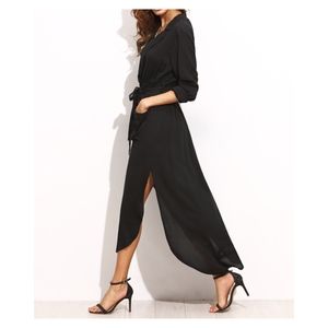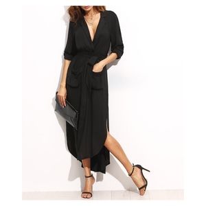 Black Button Down Maxi Shirt Dress Belted