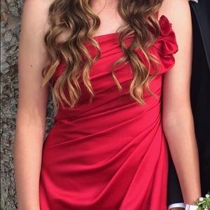This beautiful dress will catch everyone’s eye! It is a Red Gown from David’s Bridal, perfect for an elegant prom, ball, or any extraordinary affair. It is the most beautiful gown I’ve ever worn, and absolutely adore it!! I only wore it pictured here, it is still in David’s Bridal packaging and it needs a new home!