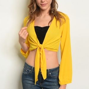 YELLOW CROP TOP, LONG SLEEVED, TIE IN FRONT.