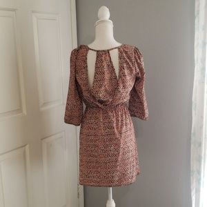 Cute back cutouts! The waist is elastic, the tie is just decorative. 3/4 length sleeves.