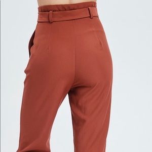 This is a Emory park belt loop high waist pants in rust color. This pants is fitted at hips and wide at the legs. The pants is made of durable fabric that looks and feels expensive.