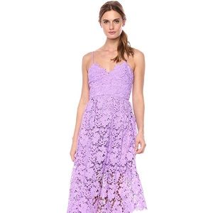 Chemical lace spaghetti strap midi dress with partially lined skirt