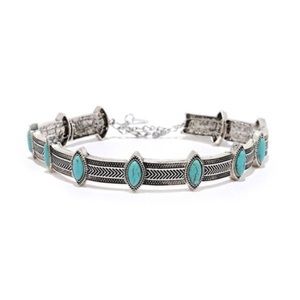 Non-tarnish sterling silver alloy blend with turquoise style accents.