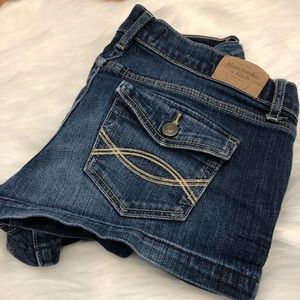 Dark Wash Stretch Denim Shorts with Button Flap Pockets