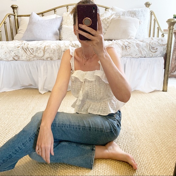 Lola White Cropped Eyelet Sleeveless Tank Top