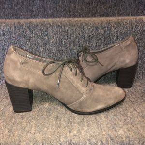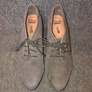 Pack it in. No matter where you're headed, these suede shooties from Clarks will get you there in style. Lace them up alongside jeans or a long skirt for a versatile look. From Clarks Footwear. Heel height is approximately 3"! We have two pair available, both brand new, however, the size 6 will come in a generic box, the original box got damaged during shipping, this had no affect on the condition of the new shoes! We are also sellers on Amazon, this can happen from time to time!