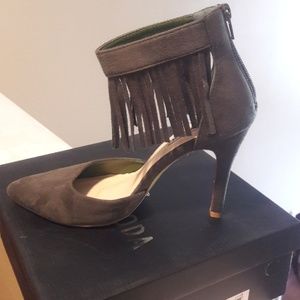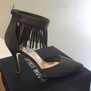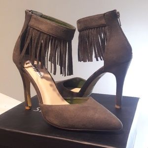 Spirit Moda olive green high heel pumps with tussell around the ankle zipper in back for easy access very attractive shoes great for any occasion perfect with skirt with 4 inch heel brand new in box. Fast shipping