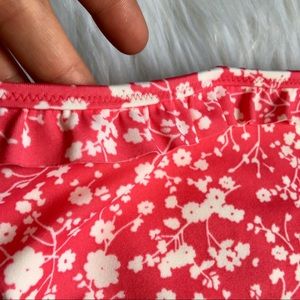 NWT J Crew bikini bottom, pink with a white floral print. Ties at the hips & ruffle accents across the top. New & unused. Marked a small.