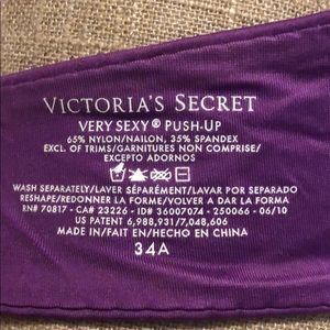 Victoria’s Secret Very Sexy Push-up Bra 34A. Satin smooth. Excellent condition. Like new. Well cared for. Always wash intimates in cold and hang dried.