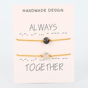 Brand new in original packaging. Trendy Dainty Boho Handmade 2pcs/Set 'Always Together' 8mm Natural Lava Stone Golden Yellow Thread Adjustable Delicate Paired Couple Bracelets. Handmade Rustic Yellow Kabbalah Rope String w. genuine white & black round ball lava stones. Fashionable jewels to share w. your best friend/lover/family!! Adjustable lace-up clasp. Hypoallergenic. Comes w/ 2 bracelets sealed in card, Ideal gift!