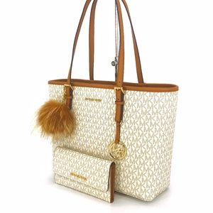 Michael Kors Jet Set Travel Medium Carryall Tote with Matching Wallet and Fur Key Charms