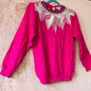Gorgeous Beaded Vintage 80s pink sweater - never worn with tags.