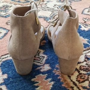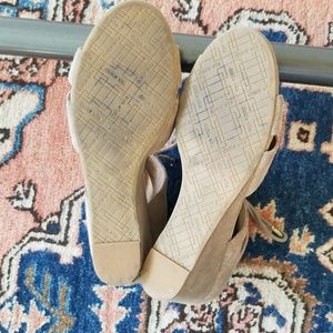 These were my favorite summer go to wedge, but slightly big on me as I am a 7/7.5. Because of the open toe and tie up ankle I was able to wear. No markings on interior. Size not marked but it is a Size 8. Scuffed heel on interior, where suede was torn. See images. Discounted accordingly. Lots of wear left!