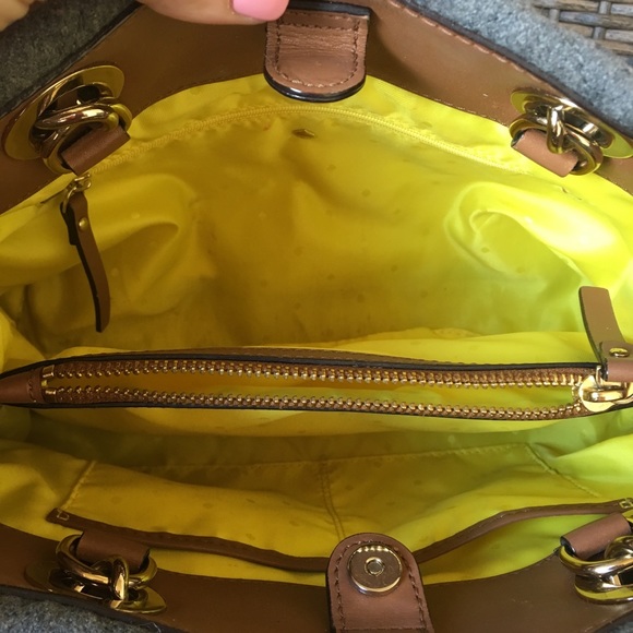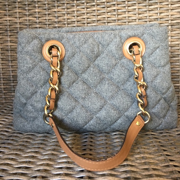 Kate Spade Felt Bag. Great condition, only real flaw is shown on handles, small small mark on inside next to the Spade logo. Wool felt bag with chain and leather straps. Very cute and versatile!
