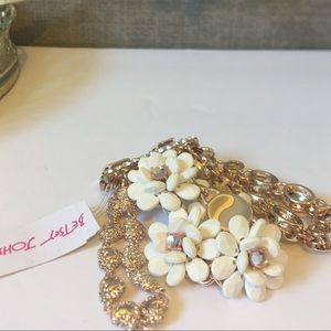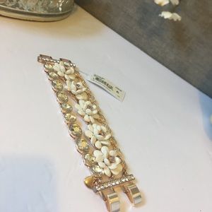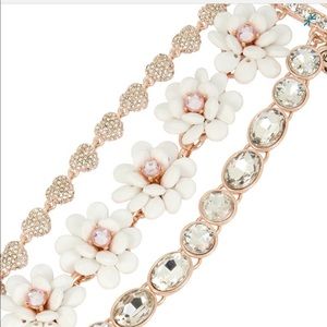 Rose gold-tone multi-cut glass crystal embellished flower and heart multi-row bracelet - Fold-over clasp - Approx. 7.5" length - Imported