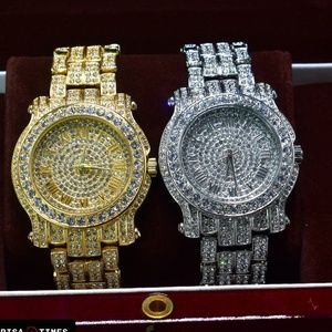Full Iced Out Gold Plate Tone and White Gold Plate Tone Numeric Dial Watch Classic Clubbing Luxury Watch Set