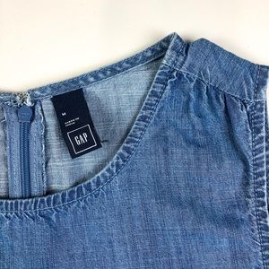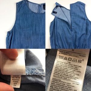 Excellent condition GAP Tencel Tank Medium Indigo Sleeveless Chambray Romper. Slant pockets. Elasticized waistband. Super soft — 100% tencel. Zip down back.