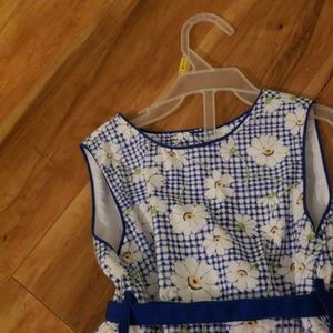 Blue and white check dress with daisies on it and a blue belt with a Pink hair band. Size4 This dress is in like new condition no rips tears or stains very cute for church or an outing for a cute little girl know smoke homeH56