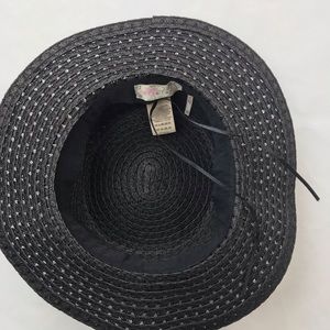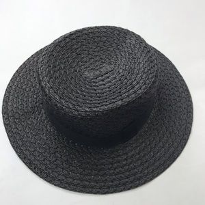 Black %100 paper wide brim grosgrain black ribbon hat band