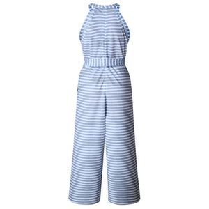 Sleeveless Blue Striped Wide Leg Jumpsuit Romper