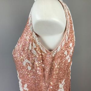 Vtg 50s Pink Sequin Beaded Wiggle Dress Rose Large