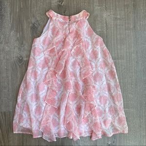 Girls 7/8 Toile Ruffle Dress Pink White DIsney