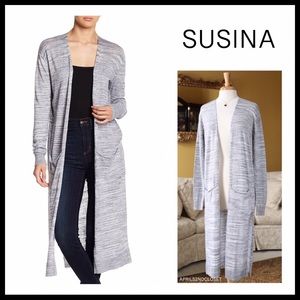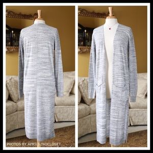 MARLED KNIT LONG DUSTER MAXI CARDIGAN WITH POCKETS