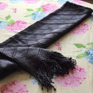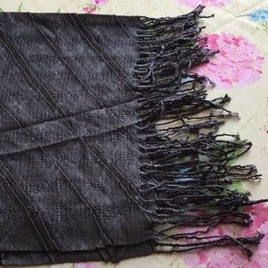 Charcoal grey fringed scarf.