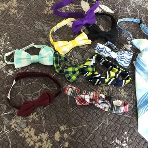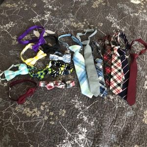 9 bow ties and 7 neck ties! Most were only worn once. Fits best for babies to 5 years. Smoke free home
