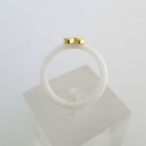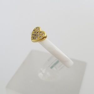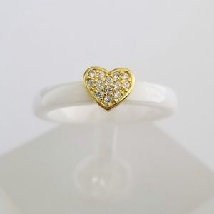 This ring is made of ceramic! Hypoallergenic, scratch resistant and more durable than other metals used in jewelry. Looks really nice on its own or next to a band. Heart is about is 5mm in size, 18k yellow gold over stainless steel with Austrian crystals. These rings cannot be sized - order true to size. All rings are measured in a standard American jeweler stick.