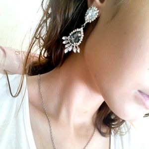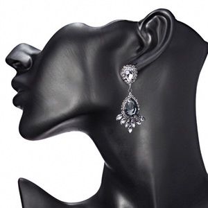 Grey Gem Silver Prom Bridal Stud Earrings: Brand new boutique item. Acrylic crystals and settings with standard posts and push backs. Beauty & sparkle without the weight! Comfortable for long wear! Lead, nickel and cadmium free posts