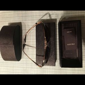 Polarized sunglasses. Black/gold. Worn twice. Too large for my face shape. Like new. Cases included- mild scratch on the case (see photo)