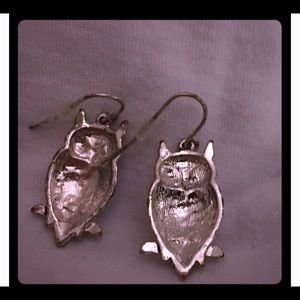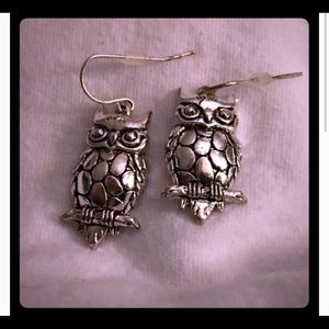 Silver nickel owl animal dangle earrings