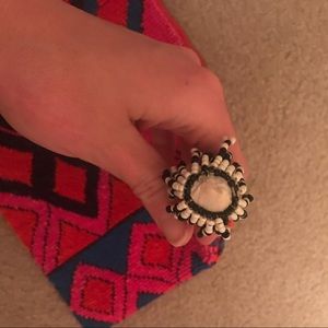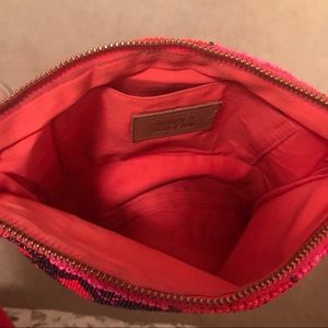 Beaded clutch/pouch purchased from Anthropologie. Row of beads missing showing in photo and some wear on interior but otherwise in good condition. Brand is Jasper & Jeera.