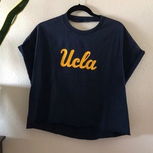 Size Large. Navy shirt with yellow UCLA California university logo on front.